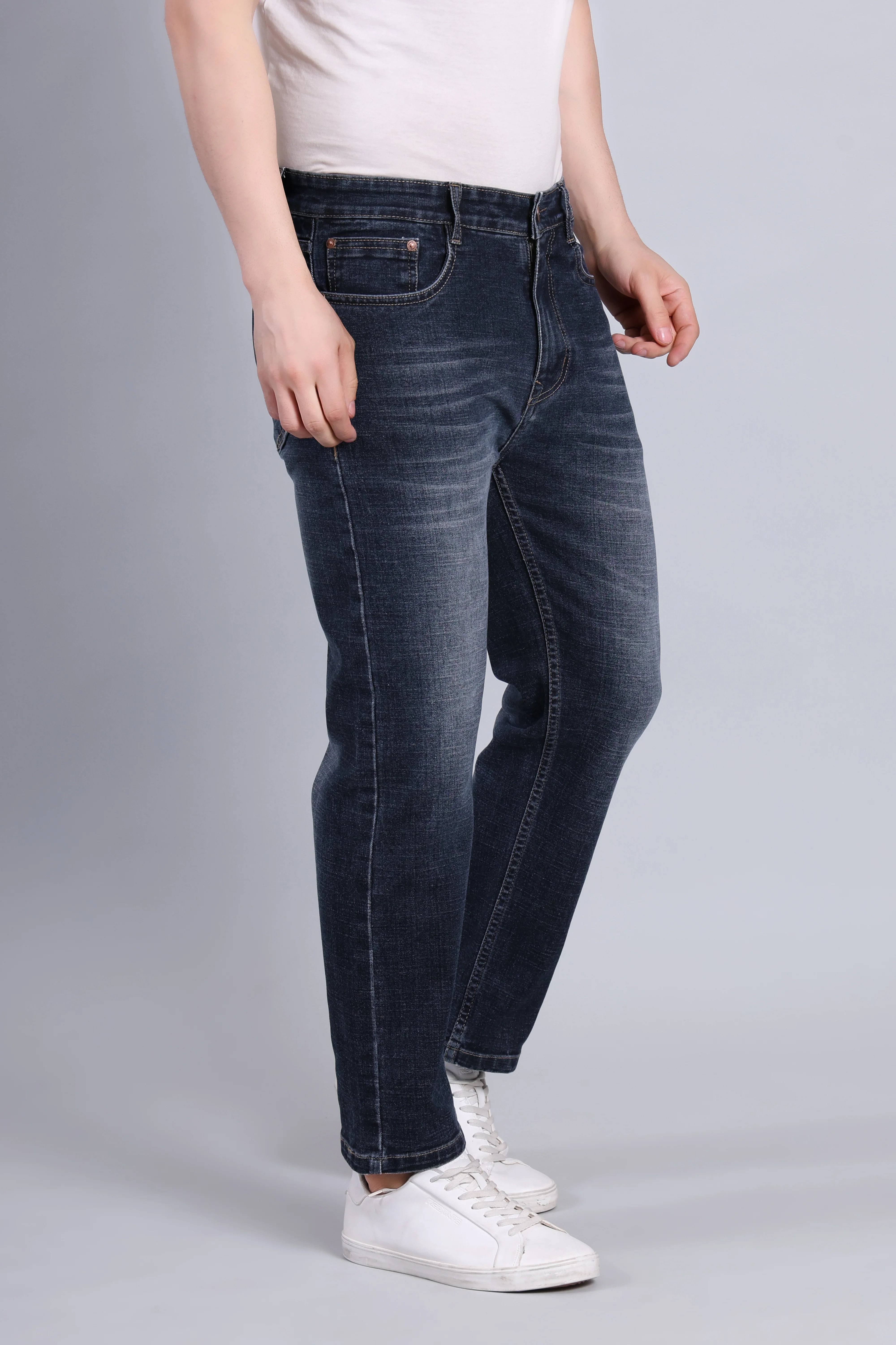 - Dark blue wash for a versatile style